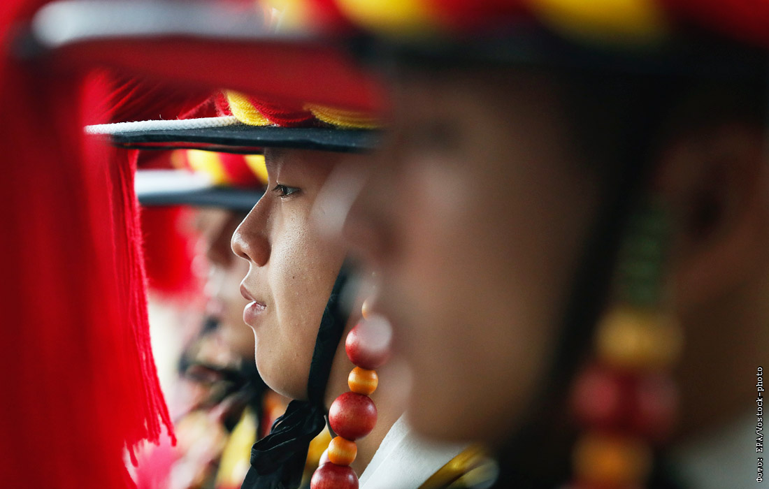 Почетный караул Южной Кореи готовится к встрече министра обороны США Марка Эспера в Сеуле