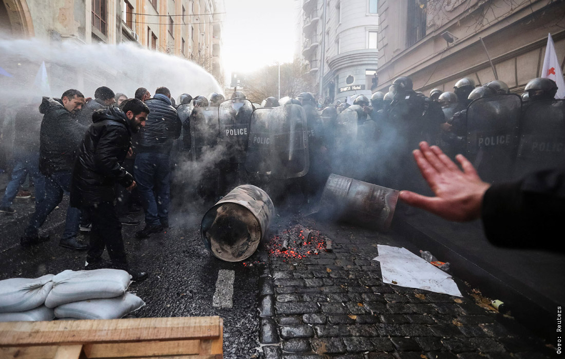 Грузинская полиция с помощью водометов очистила от протестующих территорию у здания парламента в Тбилиси, где ранее собралась оппозиционная акция. Демонстранты требовали роспуска парламента и назначения досрочных выборов. Причиной протестов стало то, что 14 ноября парламент Грузии не смог принять законопроект по конституционным изменениям, согласно которым очередные парламентские выборы в 2020 году должны были пройти полностью по пропорциональной системе.