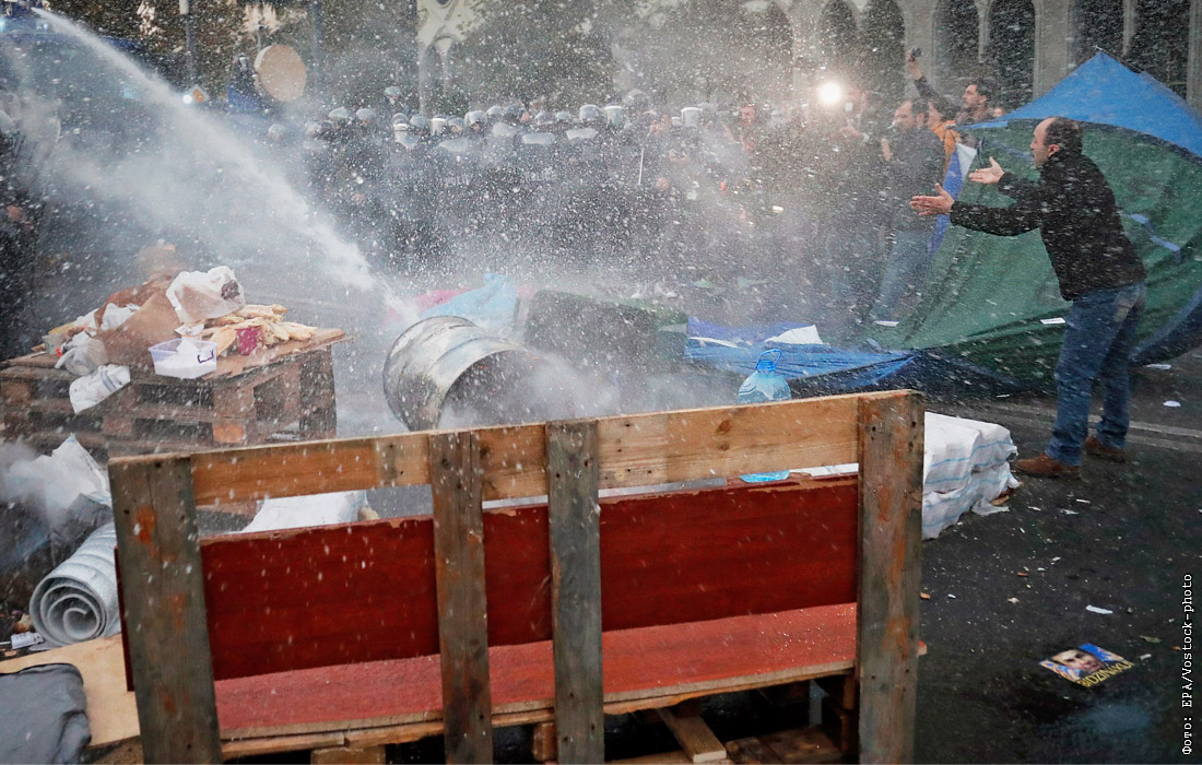 Грузинская полиция с помощью водометов очистила от протестующих территорию у здания парламента в Тбилиси, где ранее собралась оппозиционная акция. Демонстранты требовали роспуска парламента и назначения досрочных выборов. Причиной протестов стало то, что 14 ноября парламент Грузии не смог принять законопроект по конституционным изменениям, согласно которым очередные парламентские выборы в 2020 году должны были пройти полностью по пропорциональной системе.