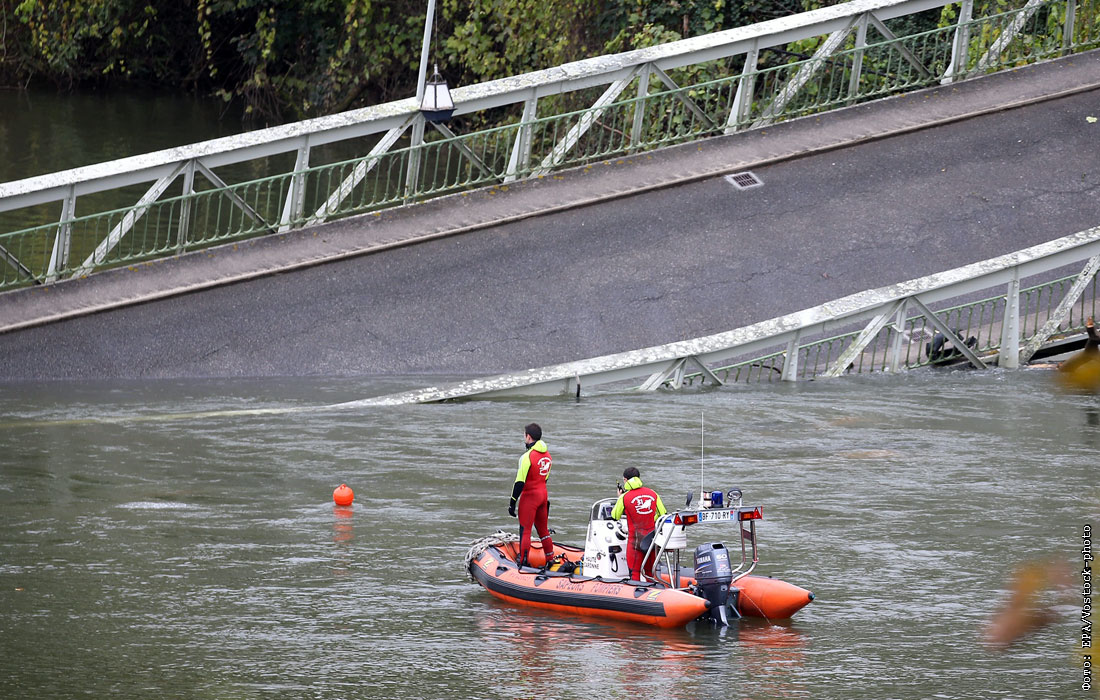 Во Франции упал подвесной автомобильный мост через реку Тарн. При обрушении погибла 15-ти летняя девочка, еще несколько человек числятся пропавшими без вести.