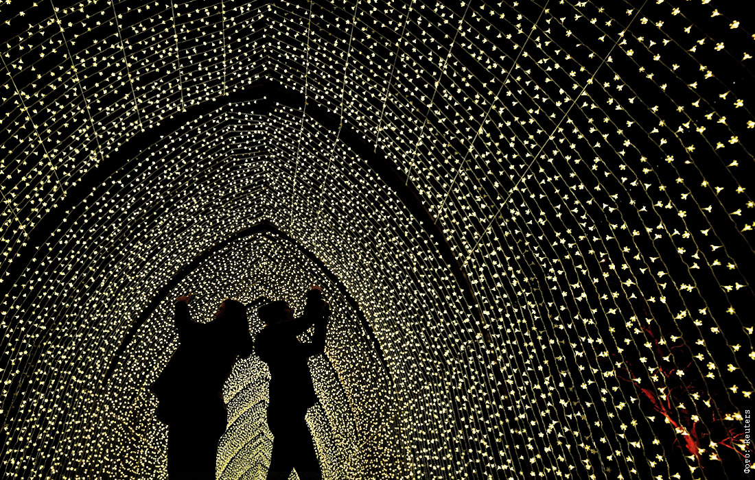 Рождественский сезон был открыт в Королевских ботанических садах Кью в Лондоне. Праздничные гирлянды и световые инсталляции украсили главную аллею парка.