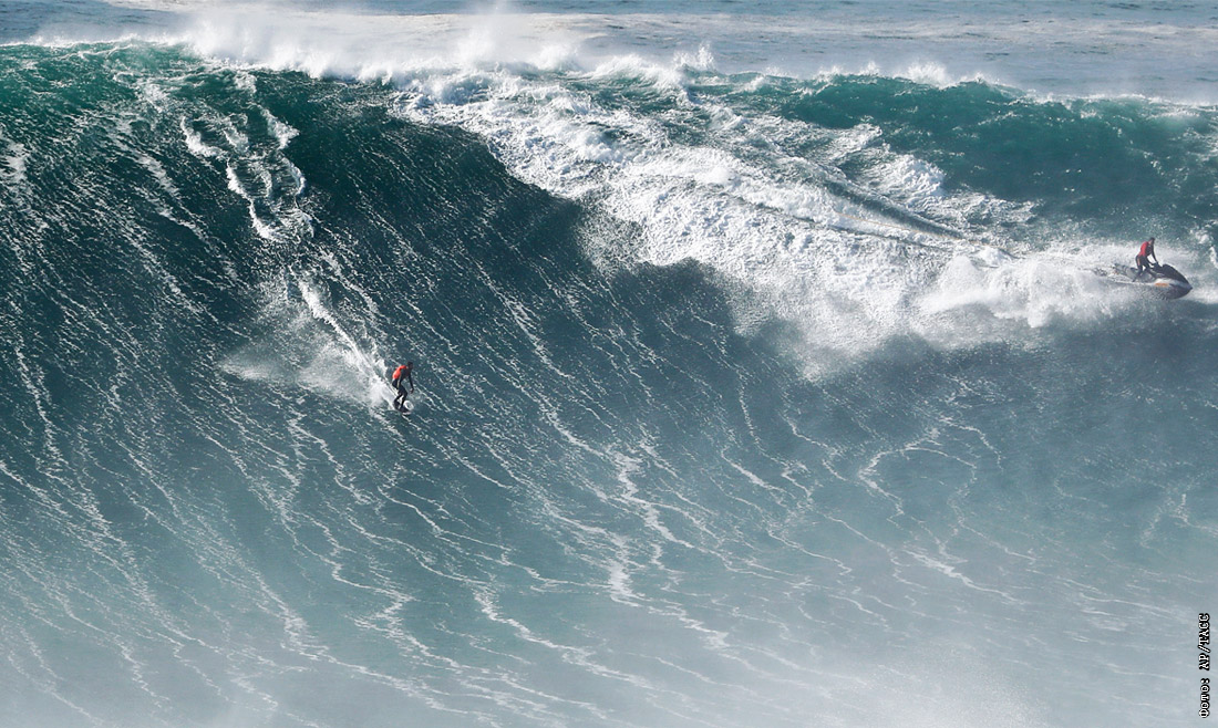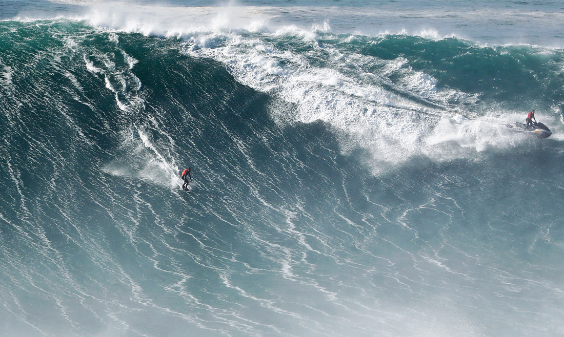 Профессиональные серферы со всего мира приезжают в португальский город Назаре, чтобы покорить самые опасные волны Европы, которые могут достигать более 30 метров в высоту. Сезон больших волн в Назаре длится с октября по февраль.
