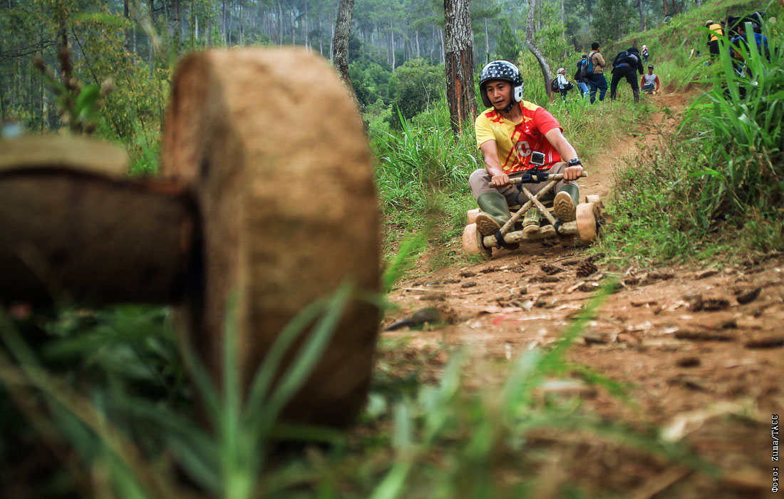 В Индонезии прошли традиционные гонки на бамбуковых автомобилях