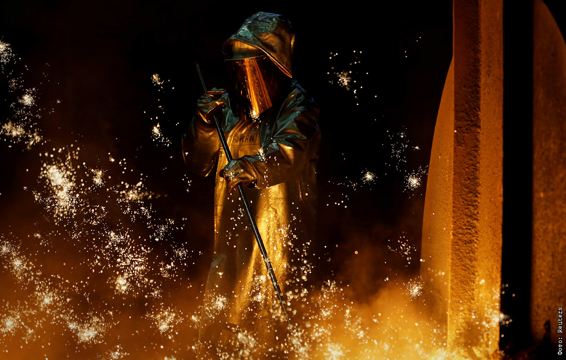 Рабочий сталелитейного завода в Дуйсбурге, Германия