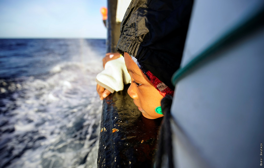 Пятилетняя Фатима на борту спасательного судна испанской неправительственной организации Open Arms в Средиземном море