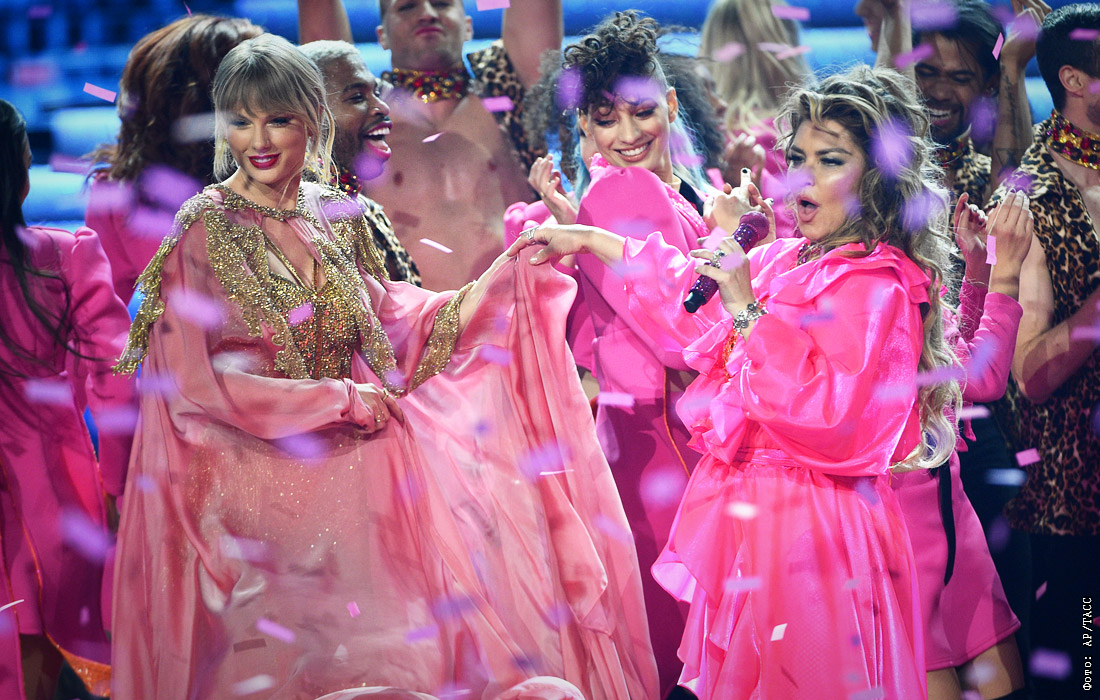Певица Тейлор Свифт, получившая почетную награду "Артист десятилетия" и певица Шанайя Твейн, впервые за 16 лет вернувшаяся на сцену American Music Awards
