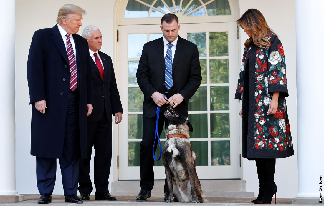 Дональд Трамп наградил медалью и грамотой за героическую службу овчарку Конана, участвовавшую в операции против лидера террористической группировки аль-Багдади