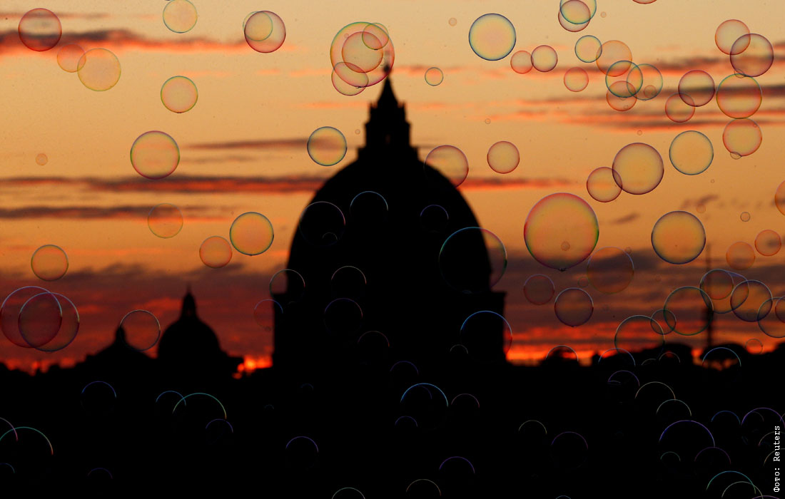 Вид на купол Базилики Святого Петра с террасы Пинчио в Риме, Италия