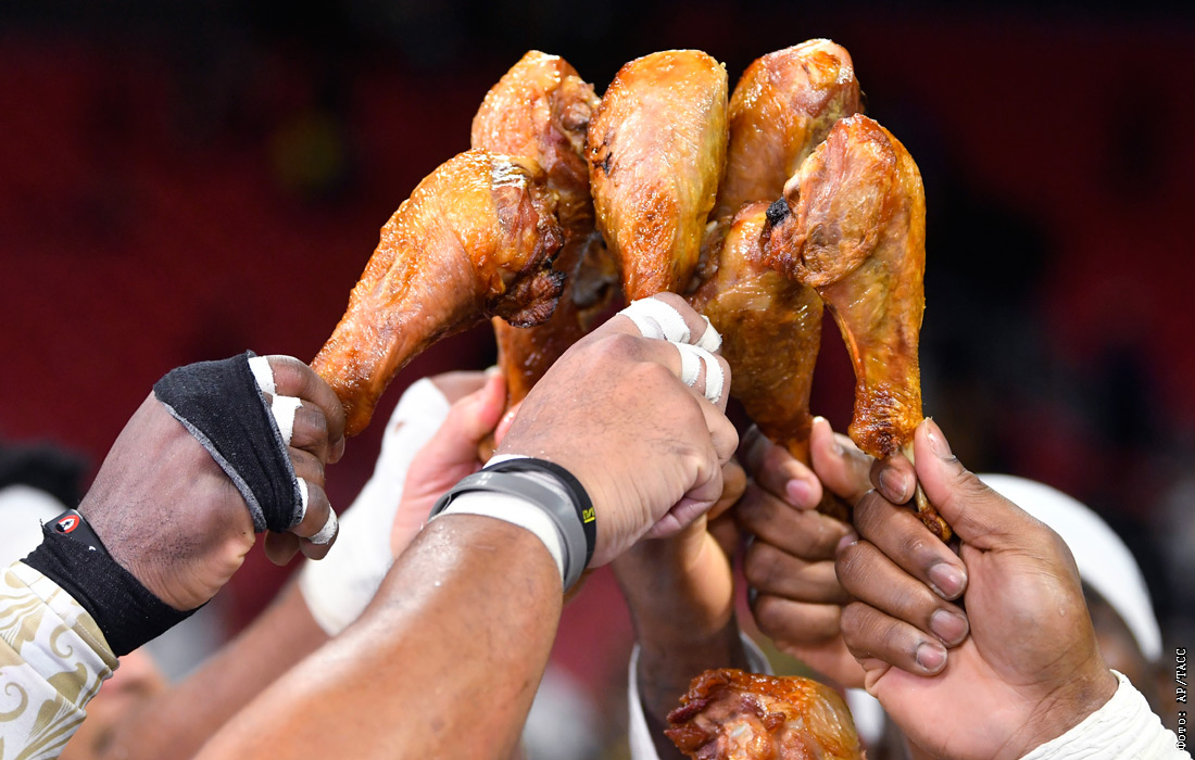 Игроки клуба по американскому футболу New Orleans Saints отпраздновали победу над Atlanta Falcons