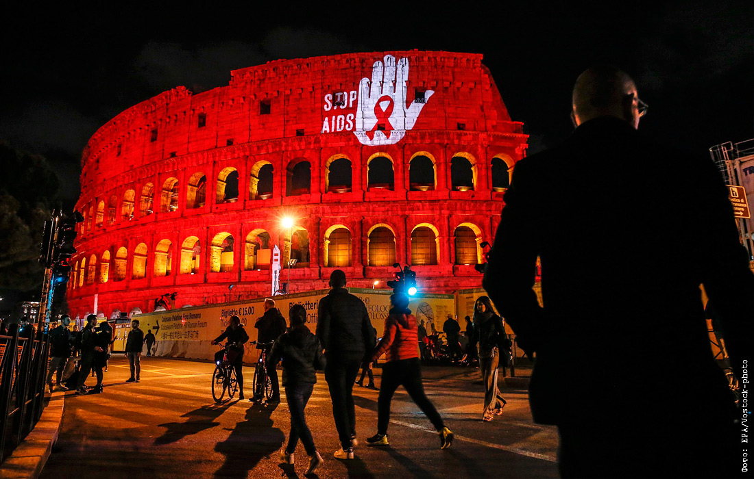 Колизей в Риме осветили красными прожекторами в рамках Всемирного дня борьбы со СПИДом