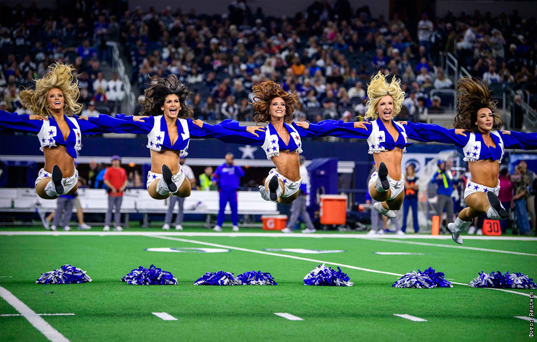 Группа поддержки во время перерыва матча по американскому футболу между между командами Dallas Cowboys и Buffalo Bills