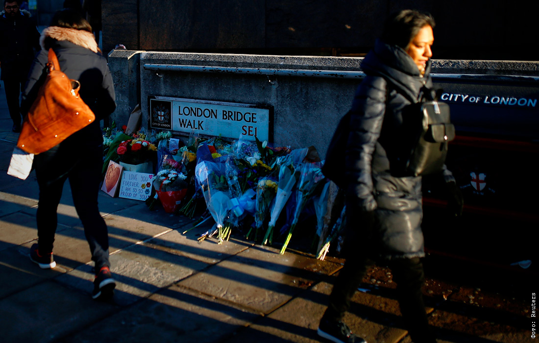 Жители столицы Великобритании несут цветы к Лондонскому мосту, где накануне был совершен теракт. 29 ноября в центре Лондона сотрудники полиции застрелили вооруженного ножом мужчину, напавшего на прохожих. Он успел убить двух человек и ранить еще пятерых.