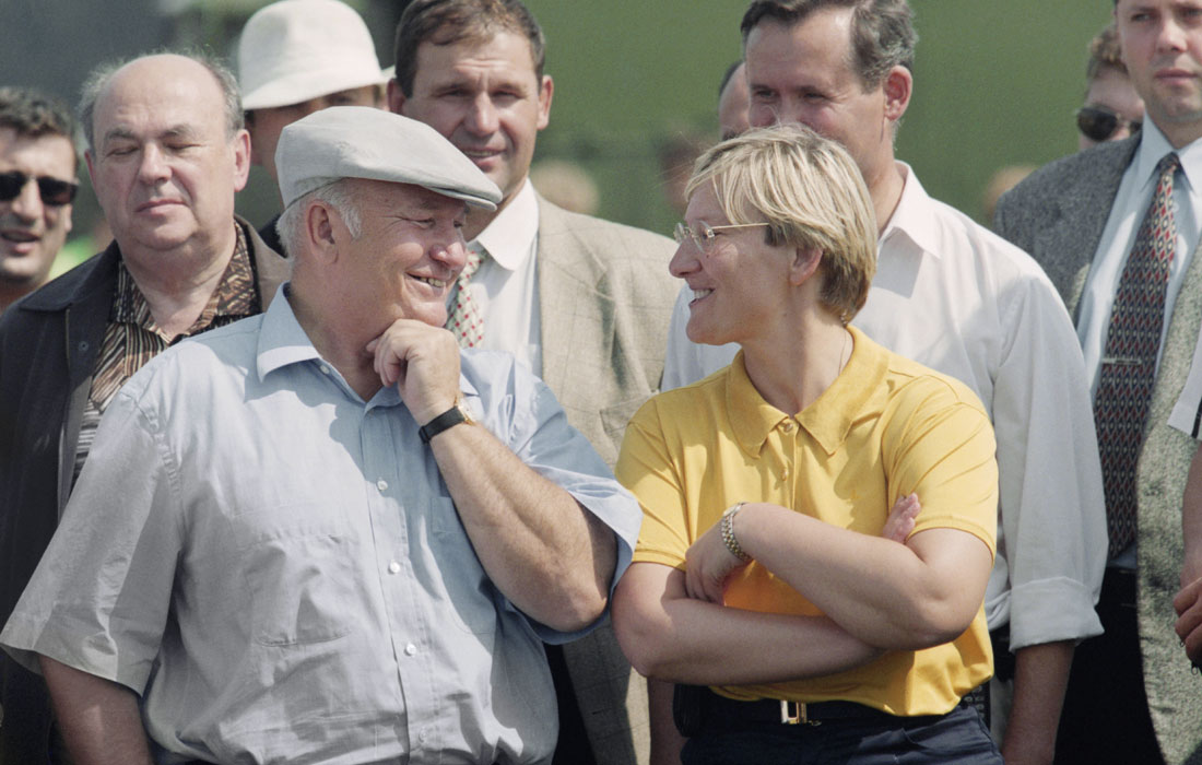 Мэр Москвы Юрий Лужков и его супруга Елена Батурина во время состязаний по различным видам конного спорта на приз мэрии Москвы. 1999 год.
