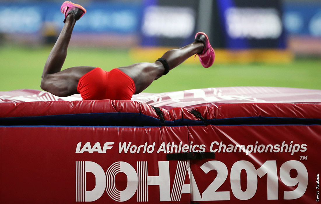 Спринтерша из Буркина-Фасо Марте Коала во время соревнований по легкой атлетике в Дохе. 2 октября.