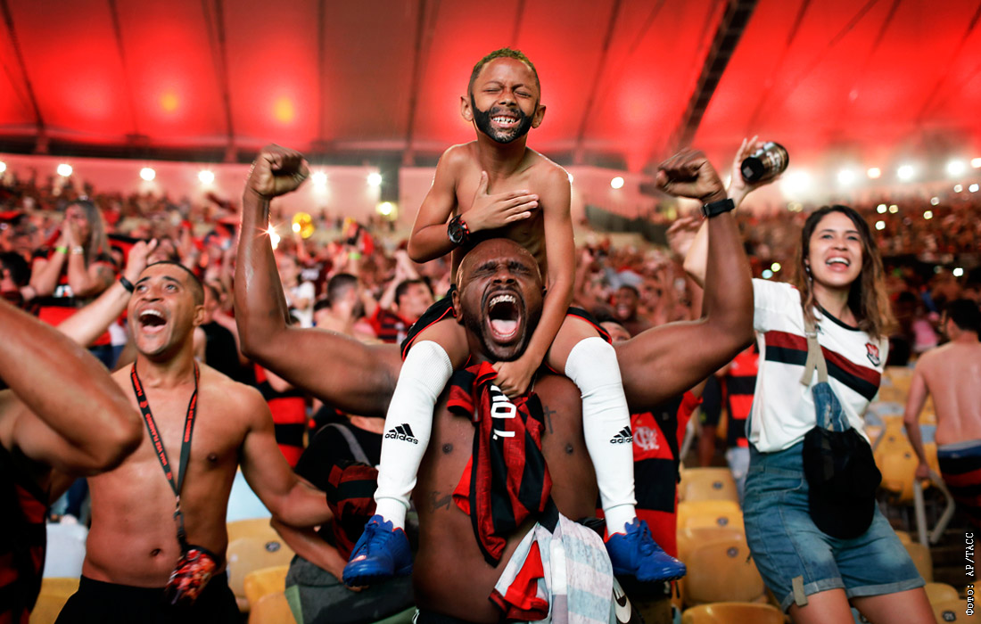 Фанаты "Фламенго" празднуют победу команды, которая впервые за 38 лет выиграла Кубок Либертадорес по футболу. Рио-де-Жанейро. Бразилия. 24 ноября.