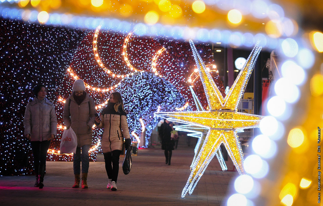 В преддверии праздников в Москве открылись рождественские ярмарки и базары, улицы украсили живые и искусственные ели, светящиеся инсталляции, праздничные композиции. Для новогоднего настроения жителям столицы не хватает снега. В Москве температура воздуха прогрелась до шести градусов выше нуля, объявлен желтый уровень погодной опасности из-за тумана.
