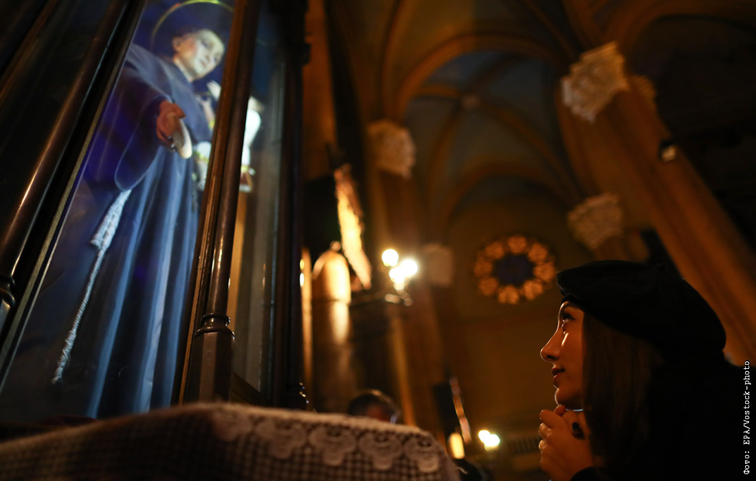 Верующая в церкви Святого Антуана в Стамбуле, Турция