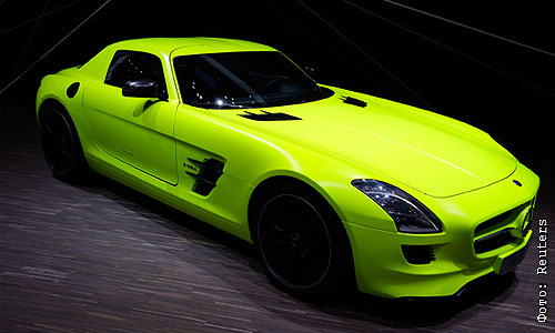 Новый автомобиль Mercedes AMG SLS E-Cell был представлен в первый день работы Женевского автосалона