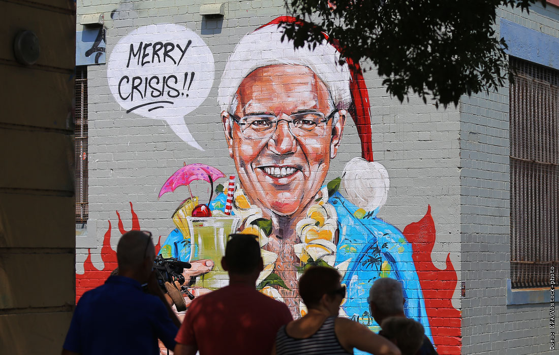 Граффити художника Скотта Марша, изображающее премьер-министра Австралии Скотта Моррисона в расстегнутой гавайской рубашке и шапке Санта-Клауса, появилось на стене в Сиднее