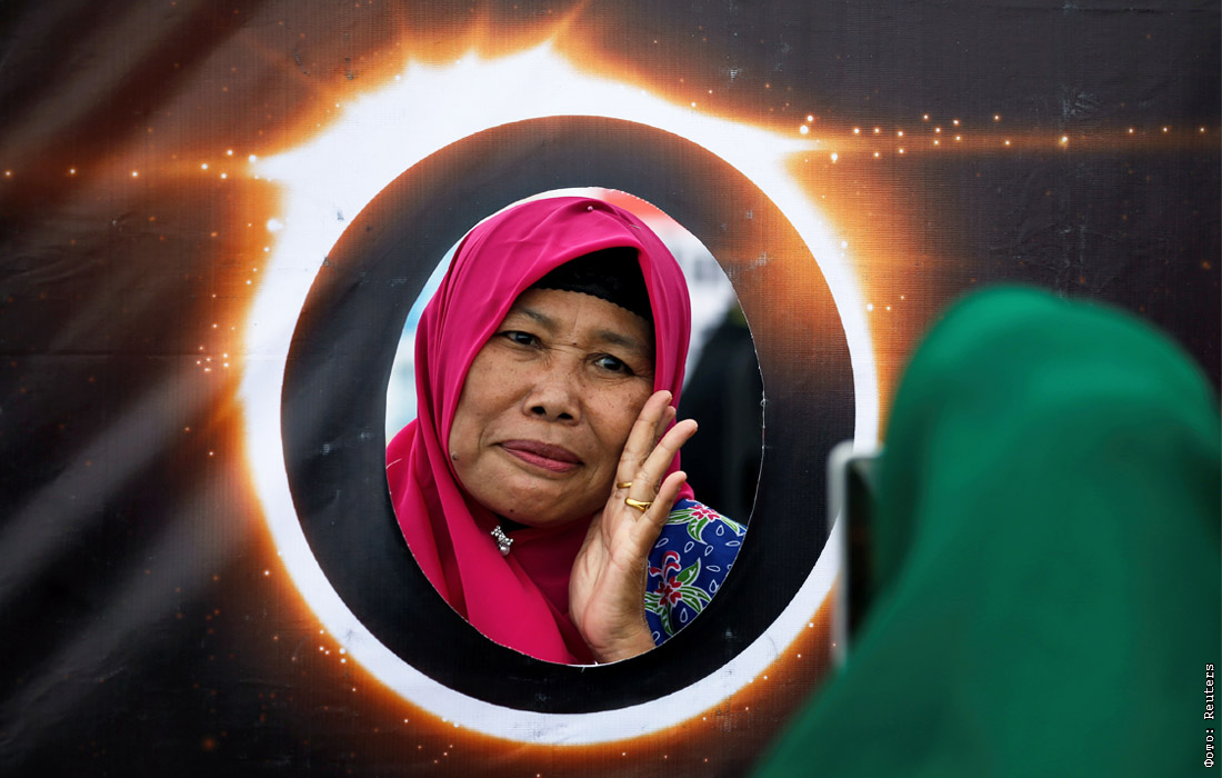 Утром 26 декабря жители многих стран могли видеть кольцеобразное солнечное затмение, при котором Луна закрывает диск Солнца не полностью, а так, что по краям видна яркая солнечная "кайма", окружающая темный лунный диск. Максимальную фазу затмения, которая продлилась 3 минуты 40 секунд, могли наблюдать в Сингапуре, Саудовской Аравии, южной Индии и части Индонезии.