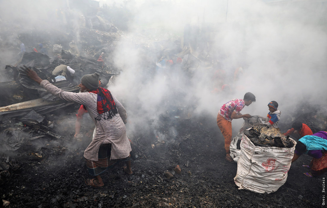 Пожар в трущобах Дакки (Бангладеш) оставил без крова сотни семей