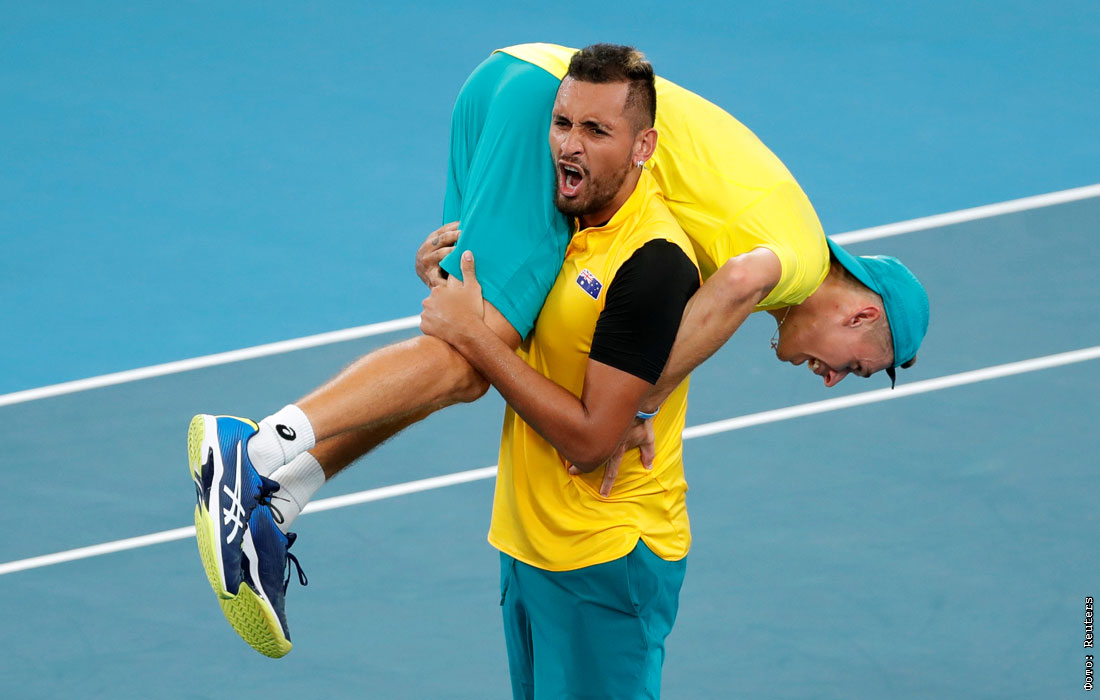 Австралийцы Алекс Де Минаур и Ник Кирьос обыграли британцев Джейми Маррея и Джо Солсбери во время четвертьфинала теннисного турнира ATP Cup в Сиднее