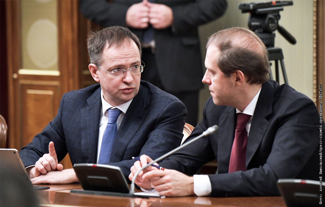 Министр культуры РФ Владимир Мединский и министр промышленности и торговли РФ Денис Мантуров (слева направо)