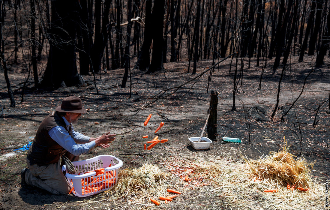 Житель австралийского штата Новый Южный Уэльс оставляет морковь пострадавшим от лесных пожаров животным