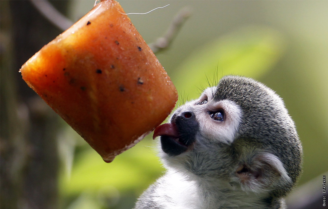 Обезьяна спасается от жары в зоопарке колумбийского Медельина