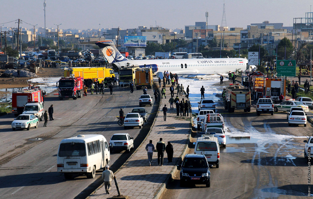 В Иране пассажирский самолет авиакомпании Caspian Airlines выкатился за пределы взлетно-посадочной полосы на улицу города Махшехр. Пострадавших в результате инцидента нет.