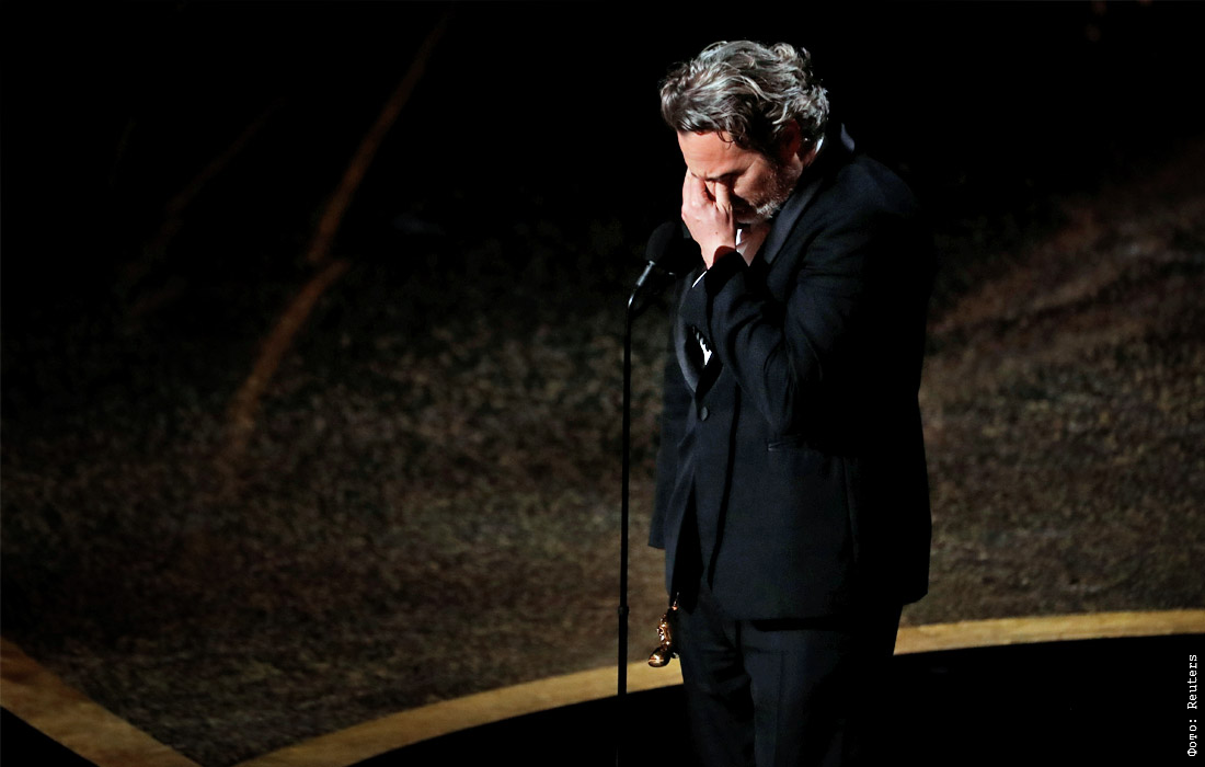 Хоакин Феникс получает награду в номинации "Лучший актер" за роль Джокера
