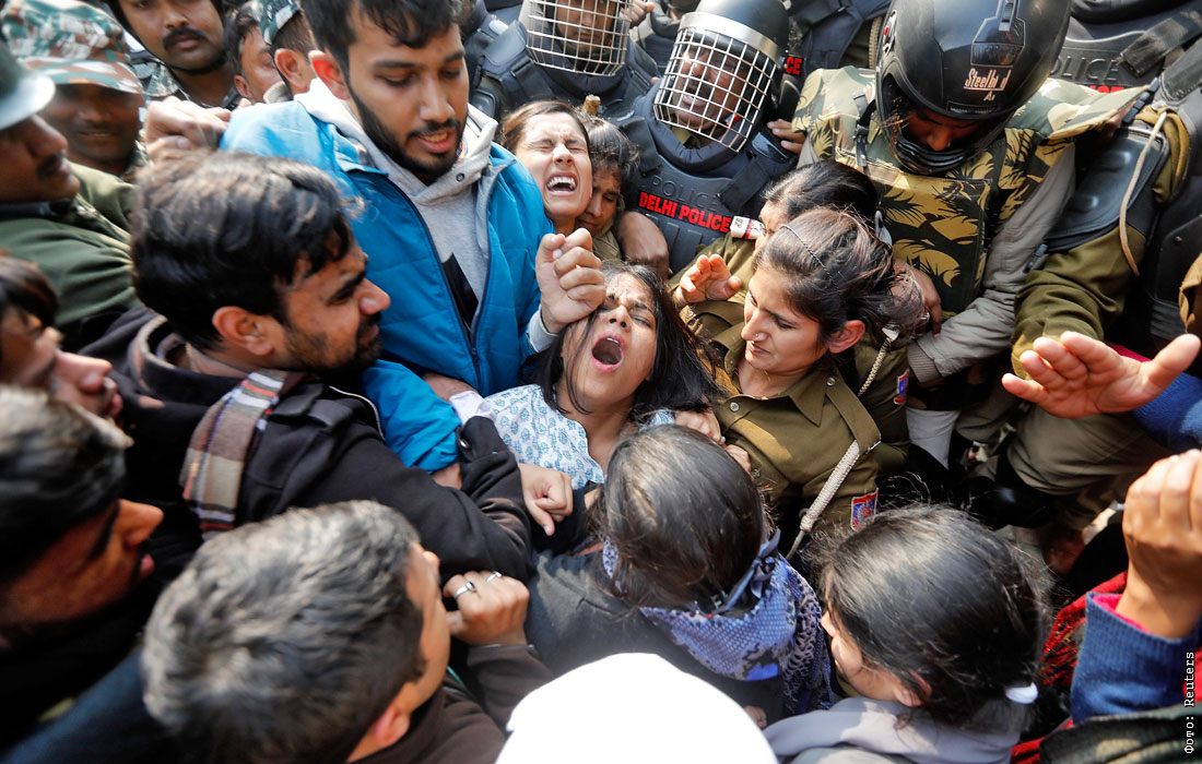 Столкновения между протестующими против нового закона о гражданстве и полицией произошли возле университета в Нью-Дели, Индия