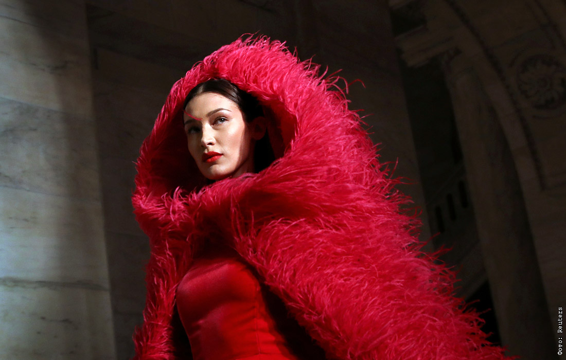 Модель Белла Хадид представила творения дизайнера Оскара де ла Ренты во время Недели моды в Нью-Йорке