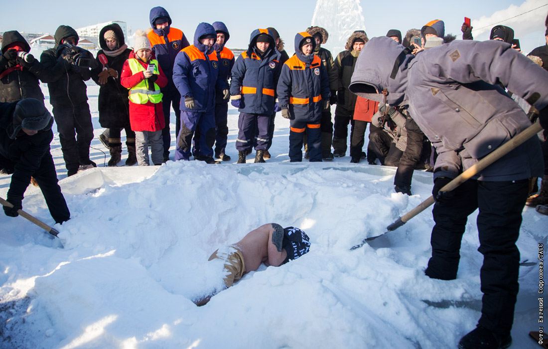 Житель Калининграда установил рекорд по самому долгому пребыванию под снегом в Якутске. Олег Резанов продержался 12 минут и 52 секунды при температуре воздуха минус 35 градусов по Цельсию.