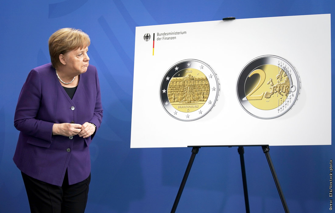 Канцлер Германии Ангела Меркель приняла участие в презентации памятной монеты номиналом 2 евро "Бранденбург" с изображением дворца Сан-Суси