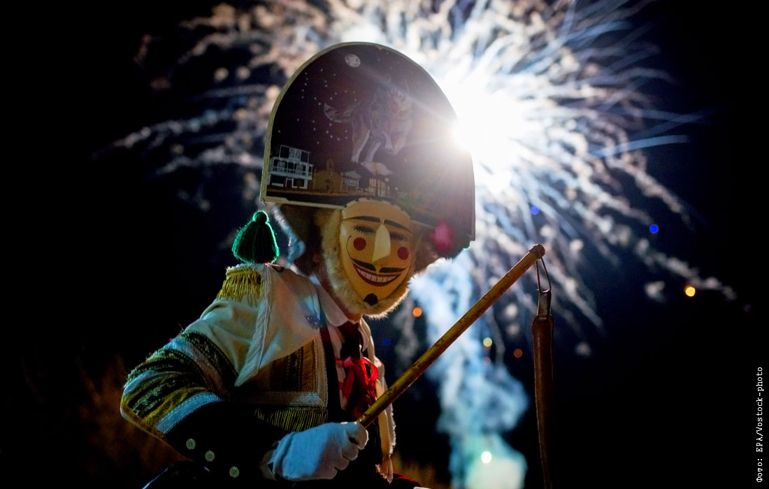 Традиционный карнавал в испанском городе Верин перед началом Великого поста. На фото: участник карнавала в костюме одного из главных его персонажей.