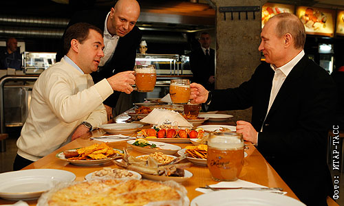 Медведев и Путин посидели в пивном баре на Арбате