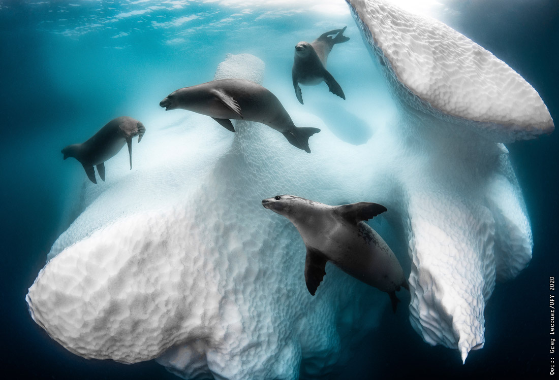 Организаторы конкурса The Underwater Photographer of the Year 2020 назвали лучшие фотографии года. Победителем стал французский фотограф Грег Лекер. Он получил главный приз за снимок тюленей-крабоедов, которые кружат вокруг дрейфующего айсберга.