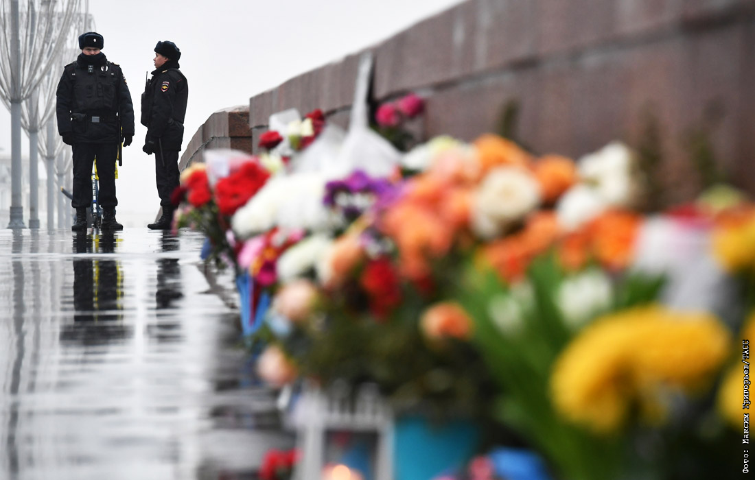 Жители Москвы приносят цветы и свечи к месту гибели политика Бориса Немцова на Большом Москворецком мосту в пятую годовщину со дня его убийства