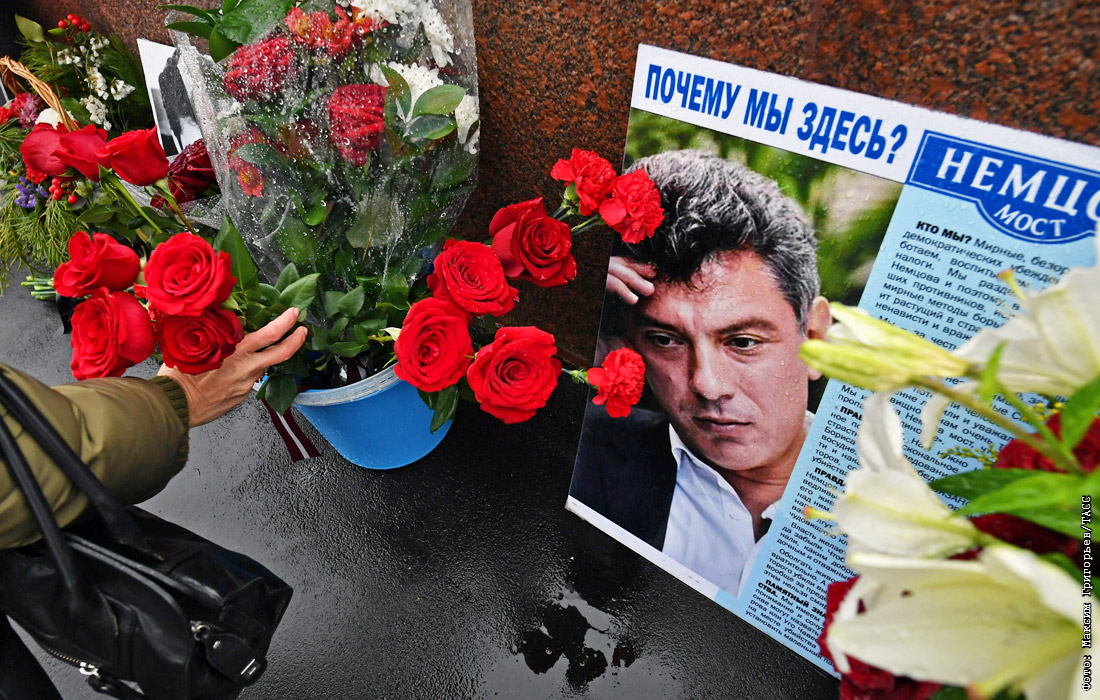 Жители Москвы приносят цветы и свечи к месту гибели политика Бориса Немцова на Большом Москворецком мосту в пятую годовщину со дня его убийства