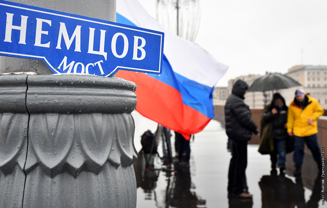 Жители Москвы приносят цветы и свечи к месту гибели политика Бориса Немцова на Большом Москворецком мосту в пятую годовщину со дня его убийства