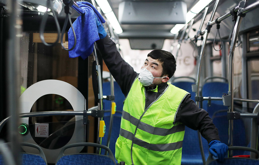 3 марта. В России подтверждены шесть случаев заражения коронавирусной инфекцией. В частности, это двое граждан Китая, выписанные после выздоровления в середине февраля, трое россиян, эвакуированных с круизного лайнера Diamond Princess и находящихся под карантином в Казани, житель Москвы, вернувшийся из Италии. На фото: дезинфекция электробусов в Москве.