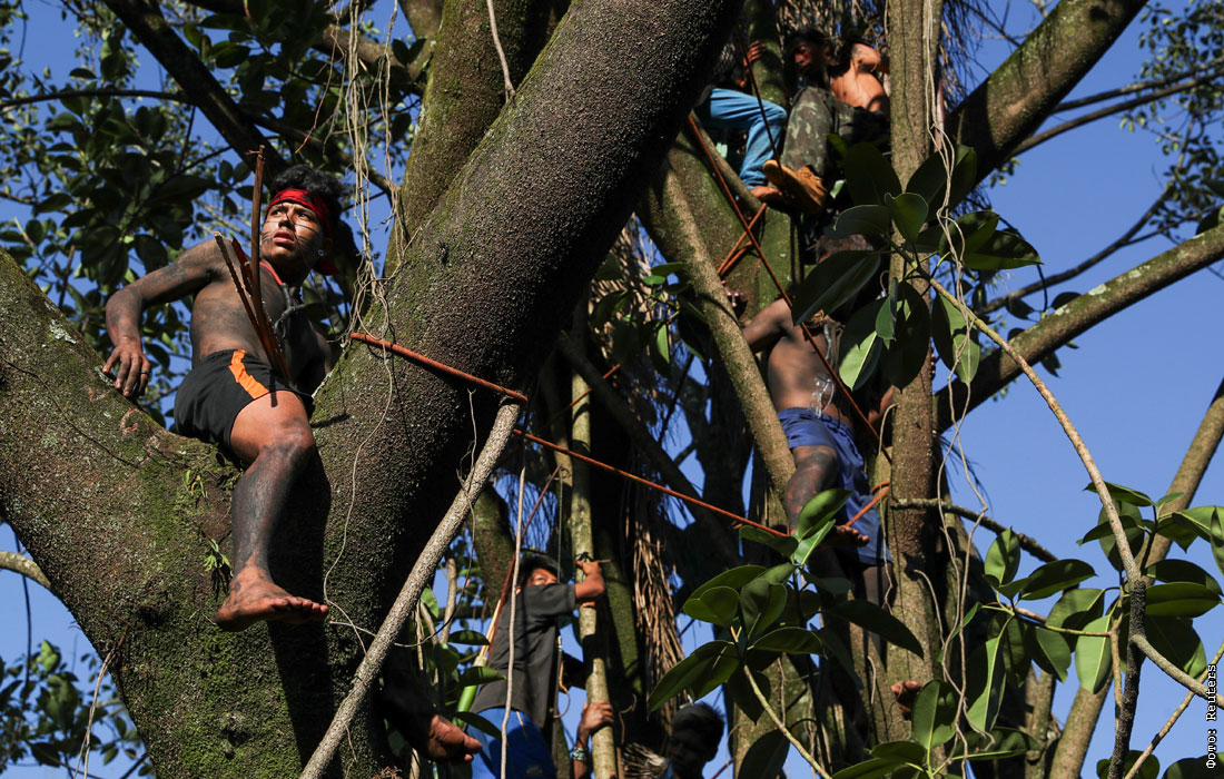 Представители одного из племен вышли протестовать против вырубки лесов и строительства жилого комплекса недалеко от их родных земель в бразильском Сан-Паулу