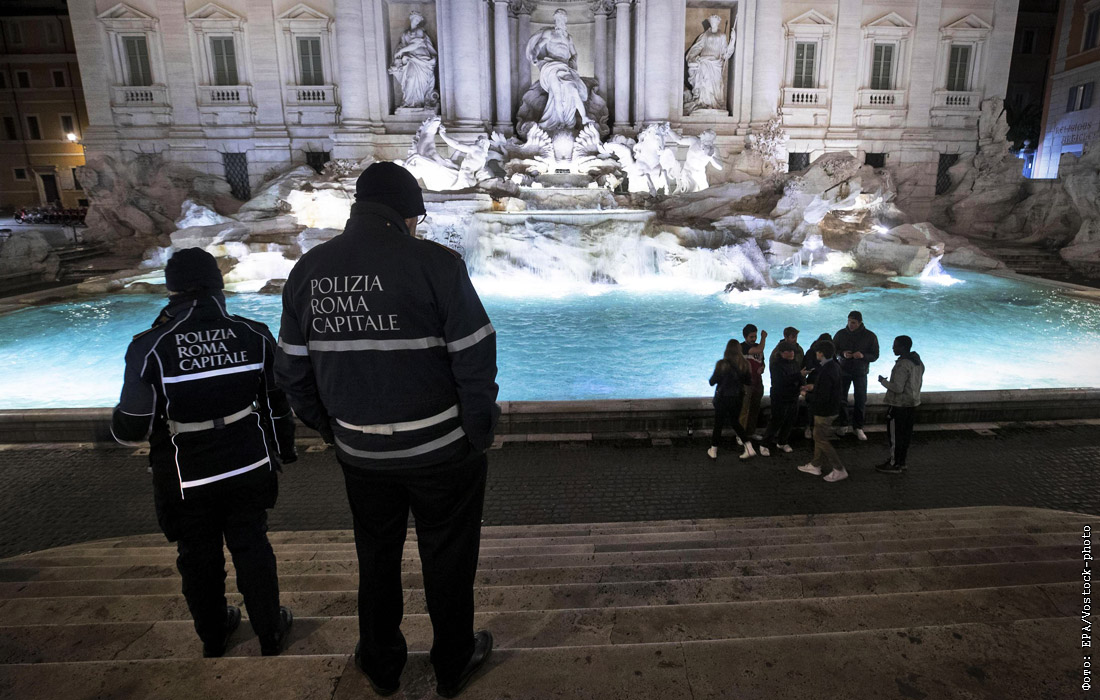 В Риме из-за коронавируса туристам запретили стоять у фонтана Треви. Таким образом в городе борются с большими скоплениями людей, способствующими распространению вируса.