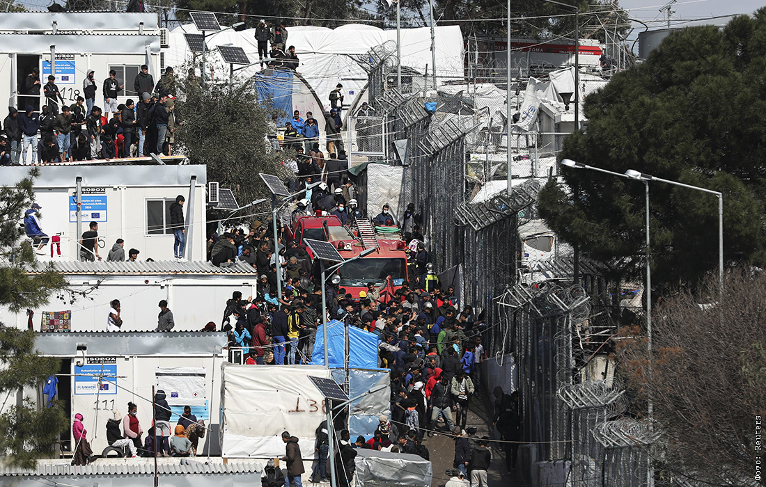 В лагере беженцев на греческом острове Лесбос случился пожар