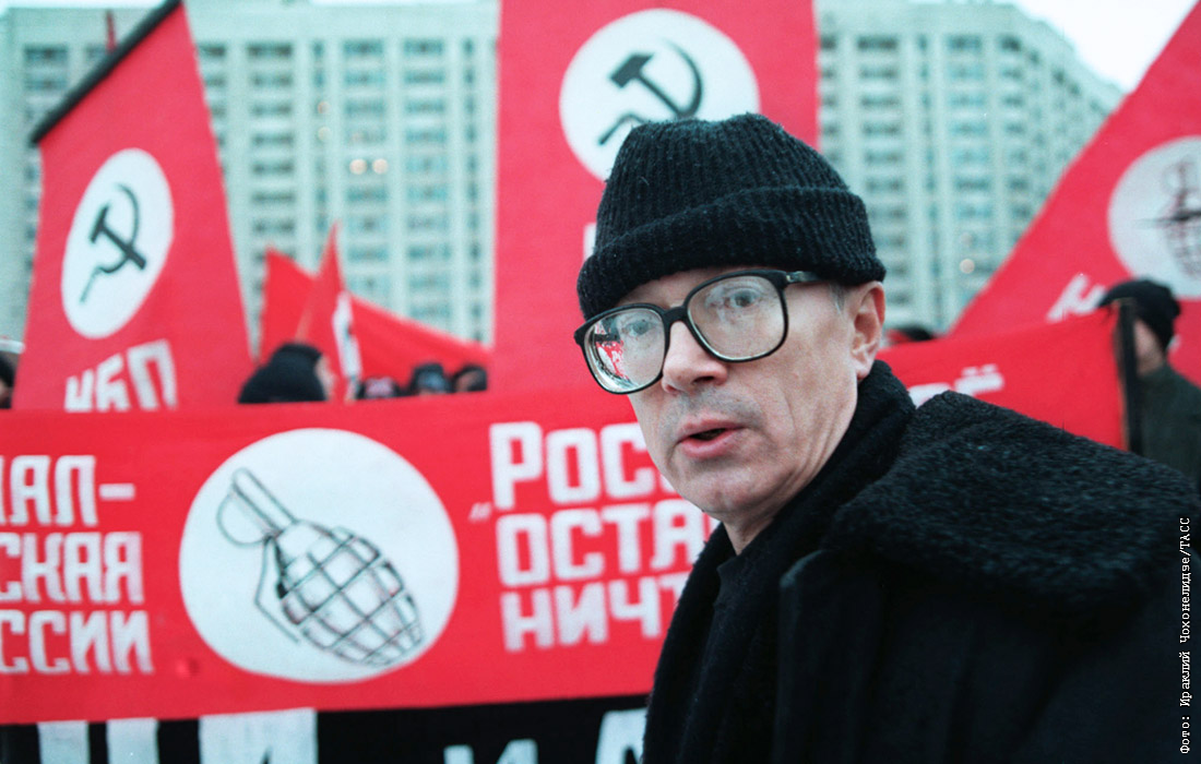Эдуард Лимонов участвует в демонстрации 7 ноября 1997 года
