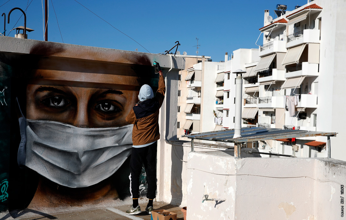 Работы уличных художников, посвященные пандемии коронавируса, в галерее "Интерфакса"