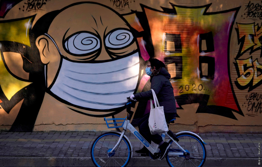 Работы уличных художников, посвященные пандемии коронавируса, в галерее "Интерфакса"