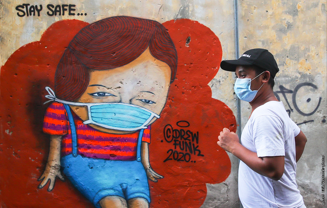 Работы уличных художников, посвященные пандемии коронавируса, в галерее "Интерфакса"