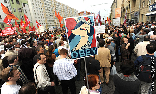 Участники акции "Марш миллионов" во время шествия по улице Большая Якиманка.